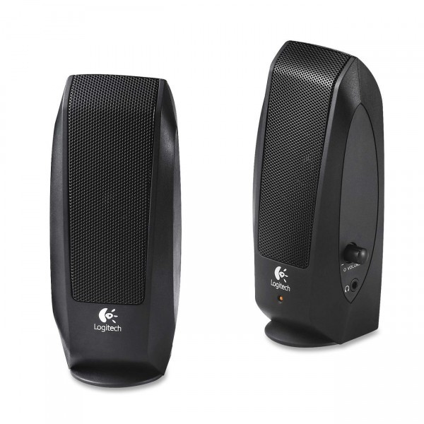 זוג רמקולים קטנים ואיכותיים מבית לוג'יטק. צבע שחור מכוון עוצמה יציאה לאוזניות
